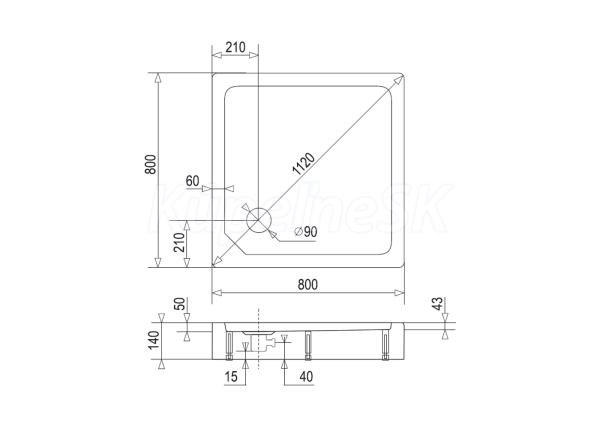 Aquatek SMC MAXI sprchová vanička rohová 80x80x14cm polymérová, Biela+sifón+krytka
