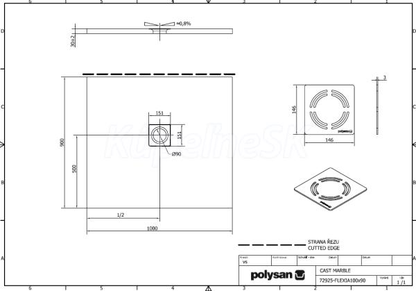 Polysan FLEXIA sprchová vanička z liateho mramoru s možnosťou úpravy rozmeru 100x90x3cm 72