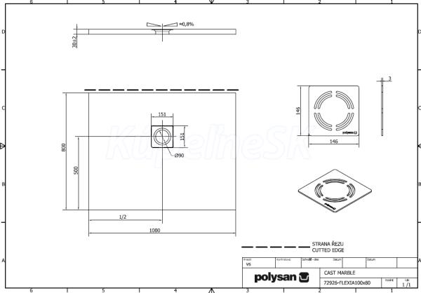 Polysan FLEXIA sprchová vanička z liateho mramoru s možnosťou úpravy rozmeru 100x80x3cm 72