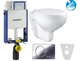 Geberit SET Kombifix 110.302.00.5 +WCzávesné BAU CERAMIC Rimless +sedátko SoftClose + Tlačidlo Sigma01 Chróm Lesklý + Podložka