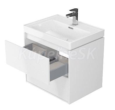 Závesná umývadlová skrinka v bielom prevedení. Korpus a predná časť skrinky je vyrobený z drevotrieskovej dosky. Skrinka má dve zásuvky s funkciou SoftClose- pomalé zatváranie.