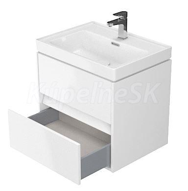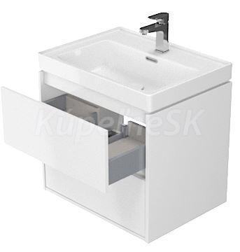 Závesná umývadlová skrinka v bielom prevedení. Korpus a predná časť skrinky je vyrobený z drevotrieskovej dosky. Skrinka má dve zásuvky s funkciou SoftClose- pomalé zatváranie.