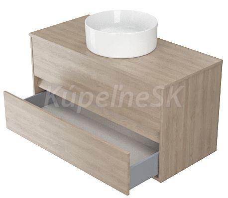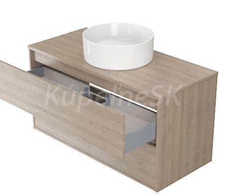 Závesná umývadlová skrinka v prevedení dub. Korpus a predná časť skrinky je vyrobený z drevotrieskovej dosky. Skrinka má dve zásuvky s funkciou SoftClose- pomalé zatváranie.