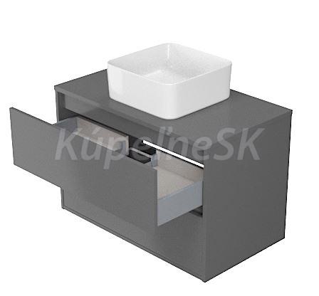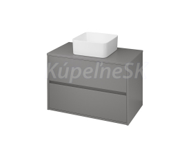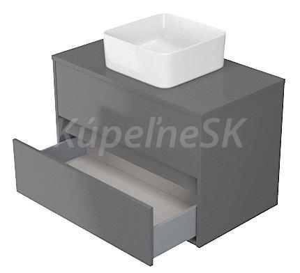 Závesná umývadlová skrinka v šedom matnom prevedení. Korpus a predná časť skrinky je vyrobený z drevotrieskovej dosky. Skrinka má dve zásuvky s funkciou SoftClose- pomalé zatváranie.
