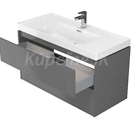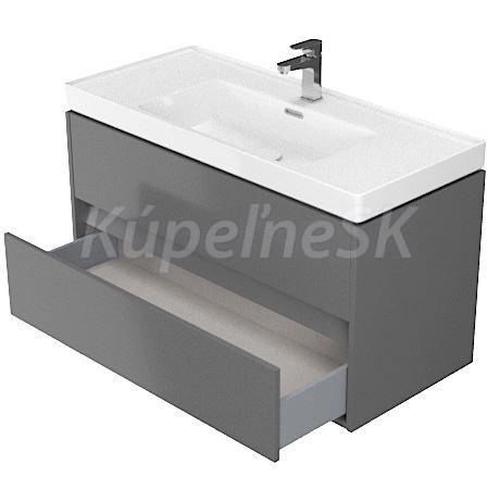 Závesná umývadlová skrinka v šedom matnom prevedení. Korpus a predná časť skrinky je vyrobený z drevotrieskovej dosky. Skrinka má dve zásuvky s funkciou SoftClose- pomalé zatváranie.