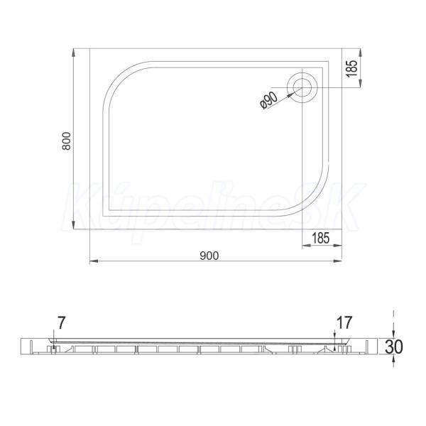Mereo Obdĺžniková sprchová vanička, 90x80x3 cm, bez nožičiek, liaty mramor CV74M