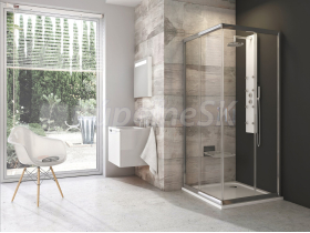 Štvordielny rohový sprchový kút Blix vo vyhotovení lesklý chróm a s výplňou z číreho skla s ochrannou vrstvou Ravak AntiCalc®. Posuvný systém otvárania.