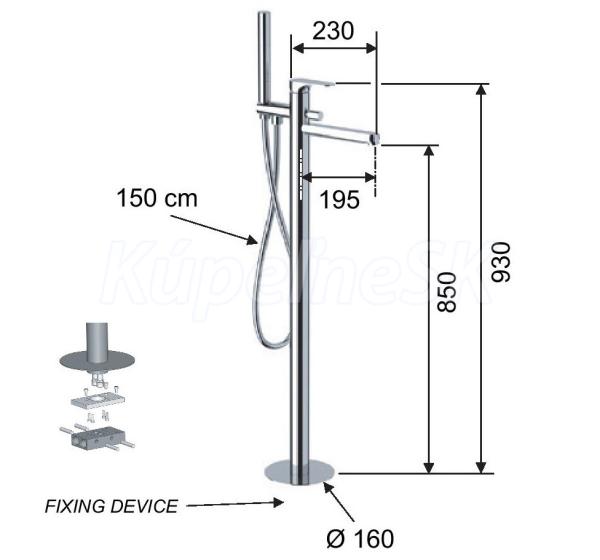 Hopa FONTI Vaňová stojánková batéria do podlahy v.930mm, s príslušenstvom, Chróm