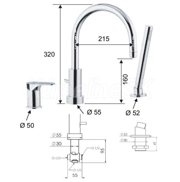 Hopa FONTI Vaňová 3-otvorová batéria na okraj vane, s príslušenstvom, Chróm