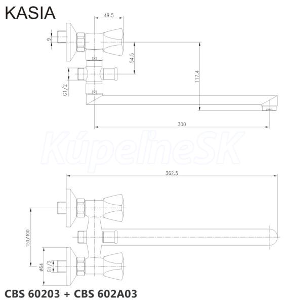 >>  Batérie vodovodné  >>  MEREO  >>  Mereo Nástenná batéria do byt. jadra, Kasia, 100 mm, ramienkom 300 mm, bez príslušenstva,