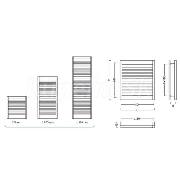 - 400 × 570 mm, výkon 259 W (vykurovacia tyč 300 W) - BOČNÉ PRIPOJENIE
