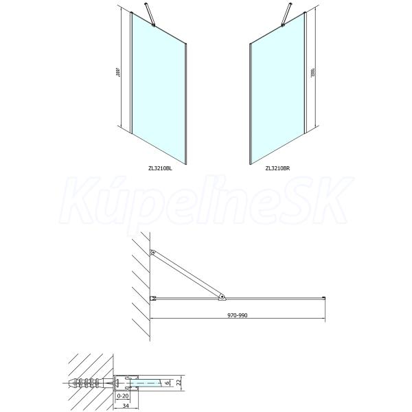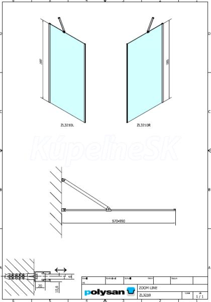 Polysan ZOOM LINE BLACK sprchová bočná stena 1000mm, číre sklo ZL3210B