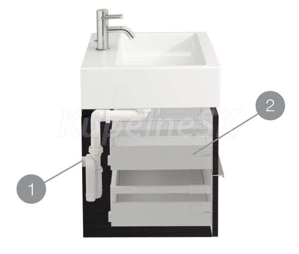Priestorovo úsporný sifón odstraňuje potrebu výrezov pre sifón v zásuvkách, získava cenný úložný priestor a zaisťuje neobmedzené využitie vnútorného priestoru.
