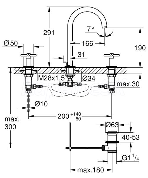 GROHE 20008DC3 ATRIO M Umývadlová 3-otvorová batéria s výpusťou, Supersteel