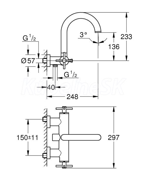 GROHE 25010003 ATRIO 150 Vaňová batéria nástenná, chróm
