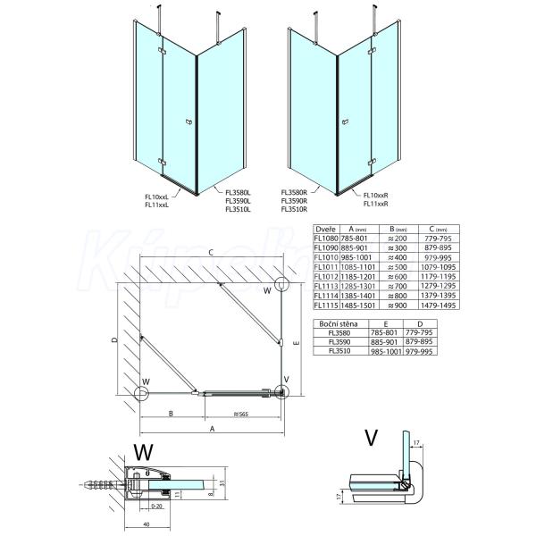 | Tvar | Pevná stena k sprchovacím dverám |