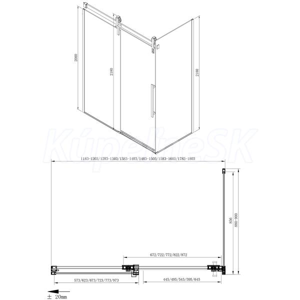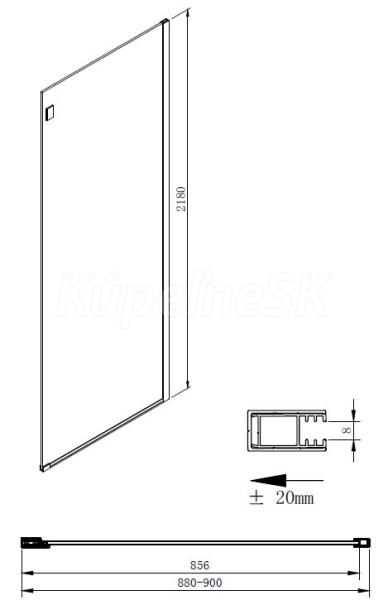 | Tvar | Pevná stena k sprchovacím dverám |