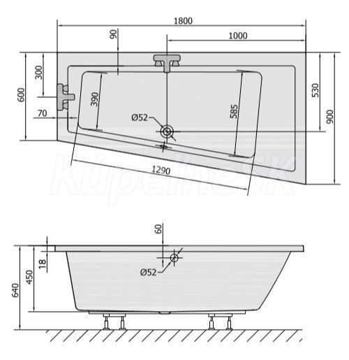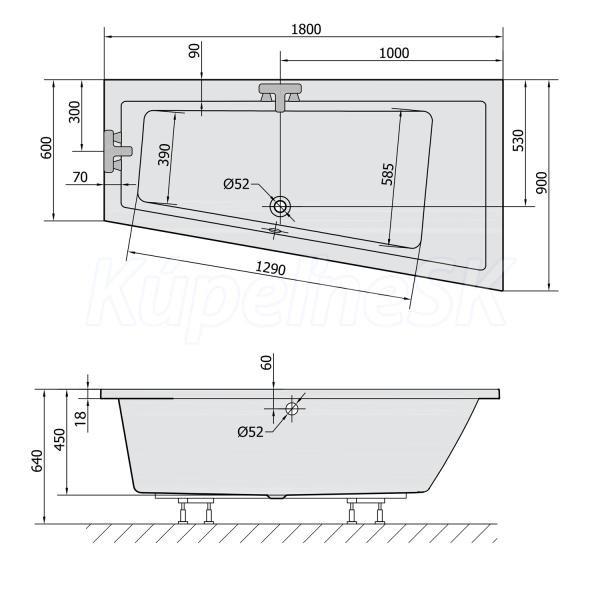 Polysan ANDRA R SLIM asymetrická vaňa 180x90x45cm, biela