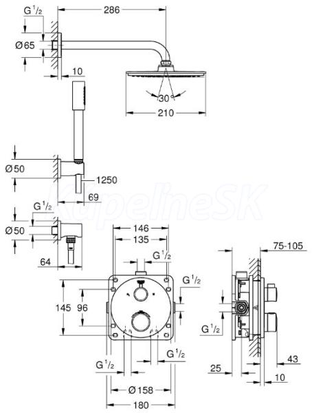 Sada Grohtherm pro kompletní instalaci s přepínačem Aquadimmer (24 076)