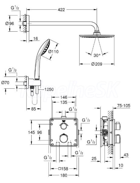 GROHE 34734000 GROTHERM Sprchový termost.set s hlavovou sprchou Cosmopolitan 210 Chróm