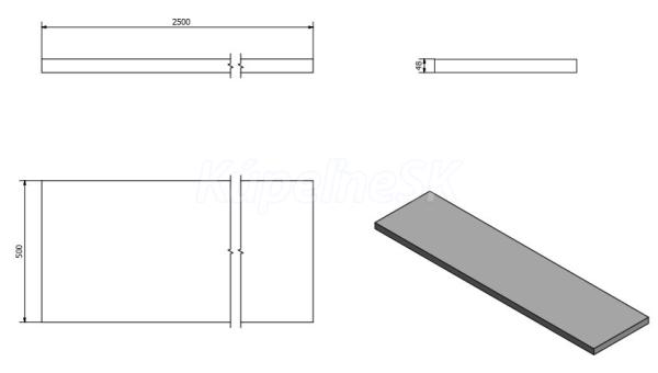 ZnačkaSAPHO SériaDOSKY AVICE Rozmer250x49,5 cm Šírka2500. mm Výška50. mm Hĺbka495. mm Far