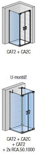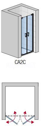 Sprchové dvere dvojkrídlové obojstranne otvátateľné do niky, alebo sprchového kúta (kombinácia s bočnou stenou CAT2), prípadne vstup trojstranného sprchového kúta (kombinácia s dvomi bočnými stenami CAT2).