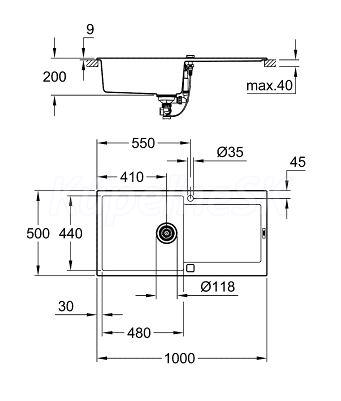 GROHE K500 31645AP0 Kuchynský drez 1000x500 s automatickým odtokom, granitová čierna