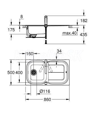 GROHE K300 31565SD0 Kuchynský drez 860x500 s automatickým odtokom,nerez+batéria Eurosmart