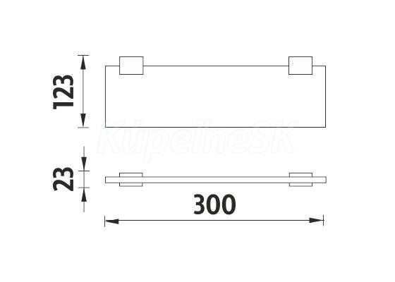 Police. Sklo extra čiré matné. Rozměr 30x11 cm. Tloušťka skla 8 mm! Úchyt police mosaz / černý mat.