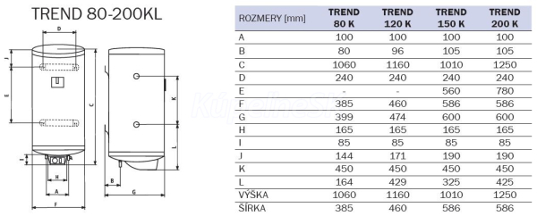 Q-termo TREND150KPN Kombinovaný vertikálný závesný ohrievač vody 150L pravé pripojenie