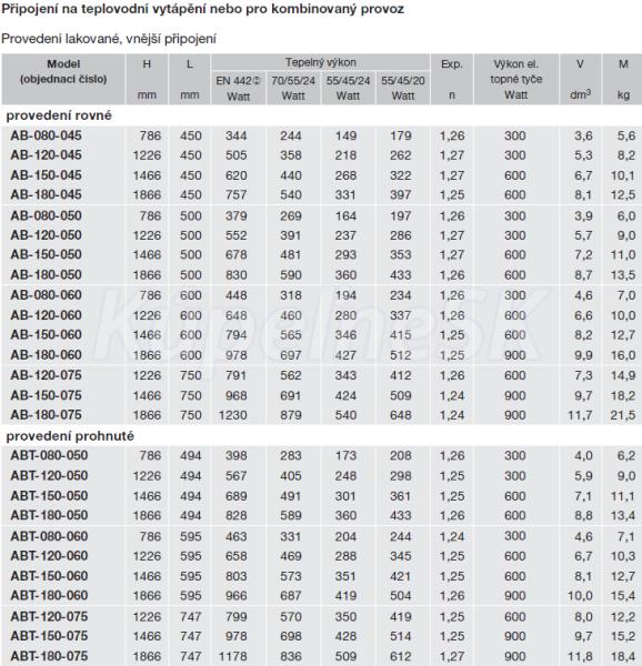 - tepelné výkony merané podľa EN 442 s označením CE