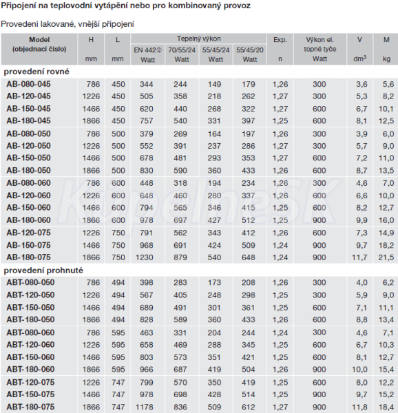 - prevedenie s vonkajším pripojením 4x1/2" vo zvyslých rúrkach pre prívod a spiatočku alebo pre 1-bodovú armatúru s el. vykurovacou tyčou