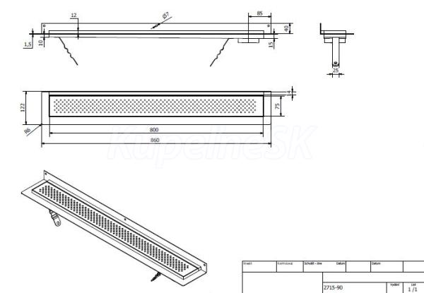>> Sprchové kúty a žľaby >> Sprchové Žľaby a Rošty >> Aqualine KROKUS nerezový sprchový kanálik s roštom, k stene, 860x122x92 mm a sifón2705-FP