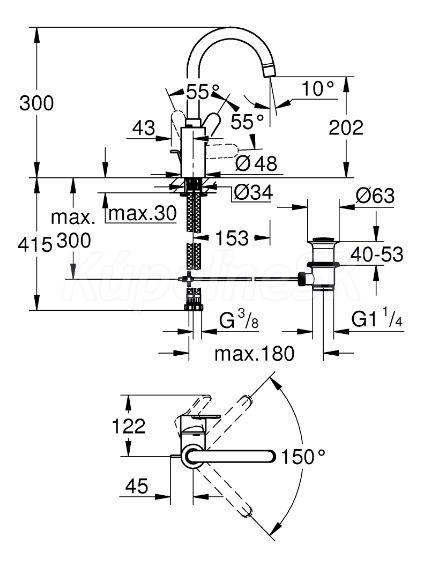 GROHE EUROSTYLE COSMOPOLITAN Drezová batéria stojánková s výpusťou,Chróm 23043003 23043003