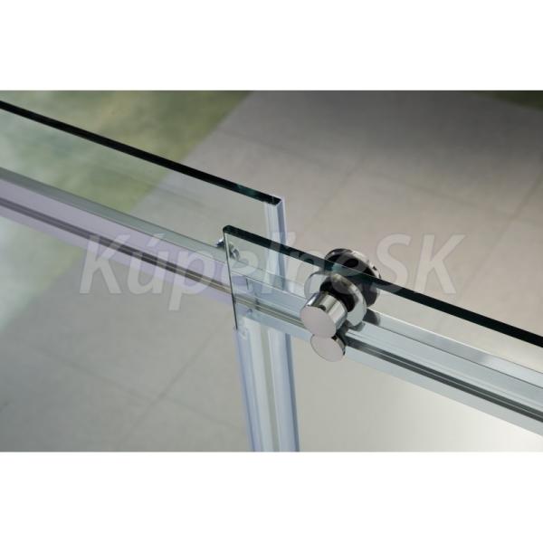 Luxusné sklenené posuvné dvere do niky. Plynulý a komfortný pohyb dverí zaisťujú horné masívne bezúdržbové ložiskové kolesá a spodný vodiaci diel. Vďaka absencii spodného vodiaceho profilu, vzniká ideálny bezbariérový vstup do sprchy. Tieto dvere sú vyrobené zo skiel o sile 8 mm. Dodáva sa v univerzálnom pravom aj ľavom prevedení.