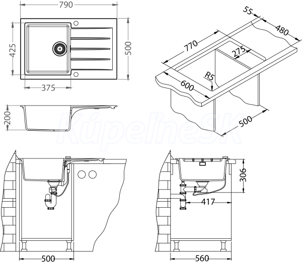 Rozmery balenia (mm): 904x598x263 Vestavěný dřez, univerzál.