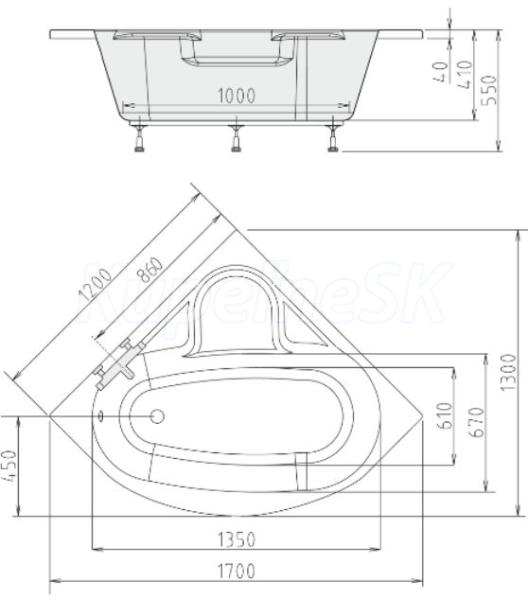 Polysan NILA rohová vaňa 120x120x40cm, biela 10111