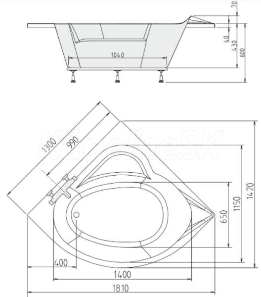 Polysan SIRIUS rohová vaňa 130x130x45cm, biela