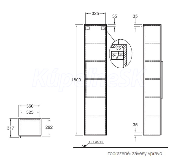• závesy dvierok voliteľné vpravo/vľavo