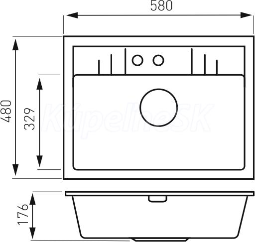 kategória distribúcie Novaservis: Kuchyňské dřezy | Granitové dřezy. Granitový drez s prepadom. Drez má rozmery 58x48 cm a hĺbku 17,6 cm. Automatické otváranie a zatváranie výpusti gombíkom. Súčasťou balenia je sifón. . 15 ročná záruka..