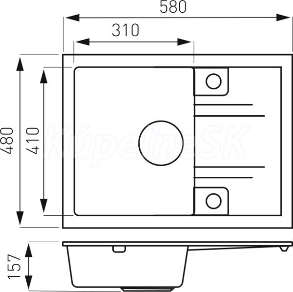 kategória distribúcie Novaservis: Kuchyňské dřezy | Granitové dřezy. Granitový drez s prepadom a odkvapom. Drez má rozmery 58x48 cm a hĺbku 15,7 cm. Automatické otváranie a zatváranie výpusti gombíkom. Súčasťou balenia je sifón. . 15 ročná záruka..