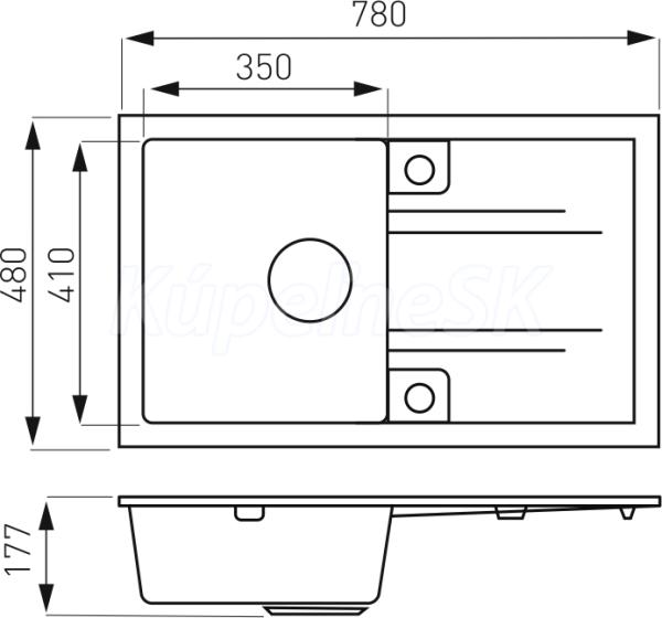 kategória distribúcie Novaservis: Kuchyňské dřezy | Granitové dřezy. Granitový drez s prepadom a odkvapom. Drez má rozmery 78x48 cm a hĺbku 17,7 cm. Automatické otváranie a zatváranie výpusti gombíkom. Súčasťou balenia je sifón. . 15 ročná záruka..