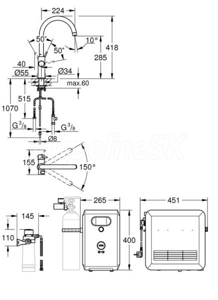 GROHE Blue filter, CO2 karbonizačné fľašu a čistiace kazeta nie sú súčasťou balenia a musia byť objednané samostatne