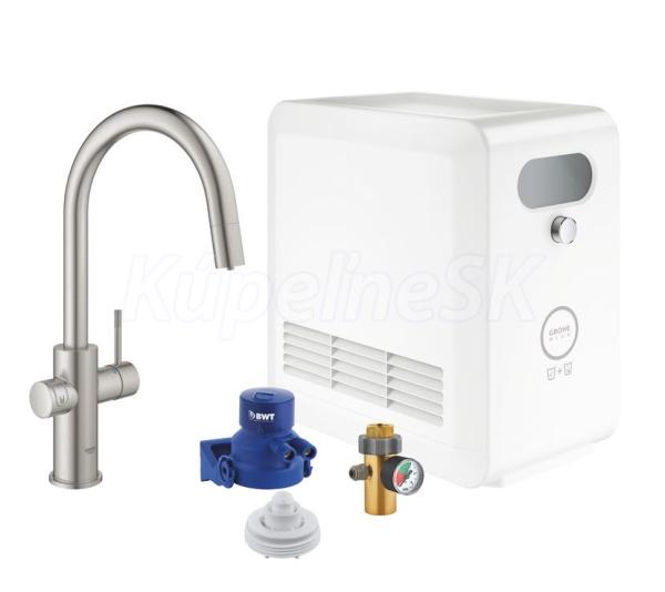 GROHE Blue Professional drezová batéria filtrácia+vysuvná sprška,Supersteel 31325DC2