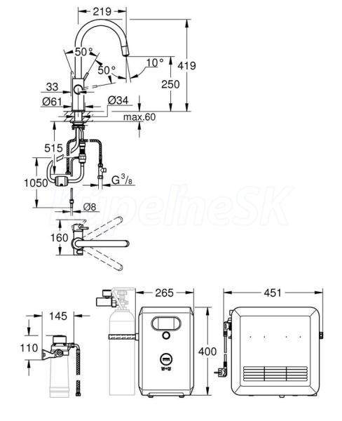 GROHE Blue filter, CO2 karbonizačné fľašu a čistiace kazeta nie sú súčasťou balenia a musia byť objednané samostatne