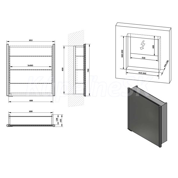INTEGRA galerka - zápustná zrkadlová skrinka s ,LED osvetlením 1x obojstranná zrkadlové dvierka 3 výškovo nastaviteľné sklenené police pánty BLUM s ,tlmením Blumotion korpus lamino Titan alu vertikálne LED osvetlenie v ,hliníkovom profile s ,tienidlom mliečne vypuklé tienidlo s ,perfektným rozptylom svetla (nie sú vidieť jednotlivé LED body) zapnutie / vypnutie osvetlenia cez externý vypínač svetelný tok 2x 1260 lm výkon 25,2 W teplota svetla 4000-4500 K , ochrana proti vlhkosti IP44 kovová úchytka pre jednoduché otváranie pravé alebo ľavé otváranie min. hĺbka niky pre inštaláciu je 140 mm Zrkadlové skrinky INTEGRA sú určené pre vstavanie. Na prvý pohľad vyzerajú ako zrkadlá, avšak s ,výhodou skrytého úložného priestoru. Galerky ponúkame v ,šírke od 65 do 125 cm. Variant 65 cm je jednodverová s ,možnosťou voľby strany otvárania, ostatné modely sú vícedvéřové. Dvierka sú obojstranne zrkadlová, čo je nespornou výhodou. Navyše sú opatrené praktickou kovovou úchytkou pre jednoduché otváranie. Svieži dizajn podčiarkujú sklenené výškovo nastaviteľ poličky. U ,vícedvéřových galériek je priestor za každými dvierkami oddelený, čo umožňuje nezávislé nastavenie poličiek v ,každej časti. Integrované vertikálne LED osvetlenie po stranách galerky je čerešničkou k ,dokonalosti. Pokiaľ by ste radi komfort úložného miesta pre nevyhnutné kozmetické drobnosti, ale klasické galerky vás odrádzajú svojím záberom priestoru, určite si Integru zamilujete. Jedinou nevýhodou je nutnosť počítať už pri výstavbe či rekonštrukcii kúpeľne s ,nikou pre zabudovanie vybraného modelu, vrátane prívodného kábla pre zapojenie osvetlenia. 761/in085-integra-zapustna-galerka_animace.gif" caption= "500" 334