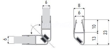>>  Sprchové kúty a žľaby  >>  Tesnenie pre sprchový kút - Aquatek  >>  Aquatek M6 Tesnenie pre sprchový kút, magnetické 45 °, hrúbka skla 6mm, dĺžka 1950mm