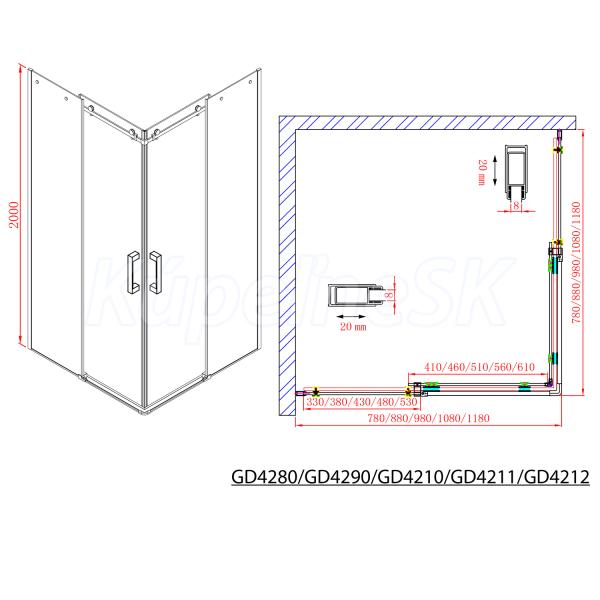 Gelco DRAGON sprchové dvere pre rohový vstup 120x200 cm Číre/Chróm Posuvné dv GD4212