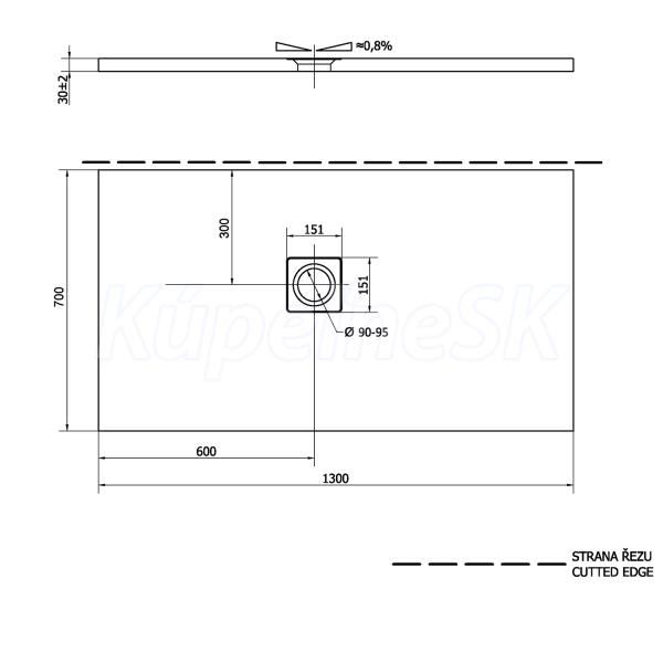 Polysan FLEXIA sprchová vanička z liateho mramoru s možnosťou úpravy rozmeru 130x70x3cm