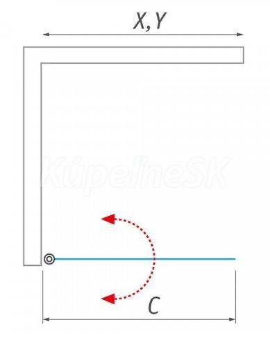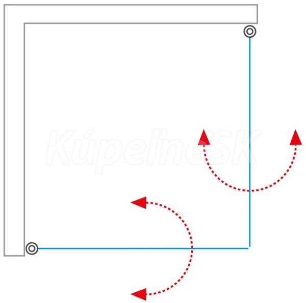 Lze zvolit kombinaci libovolných rozměrů dveří, zvlášť pro pravou a levou stranu, čímž vytvoříte čtvercový nebo obdélníkový sprchový kout LYE2+LYE2.